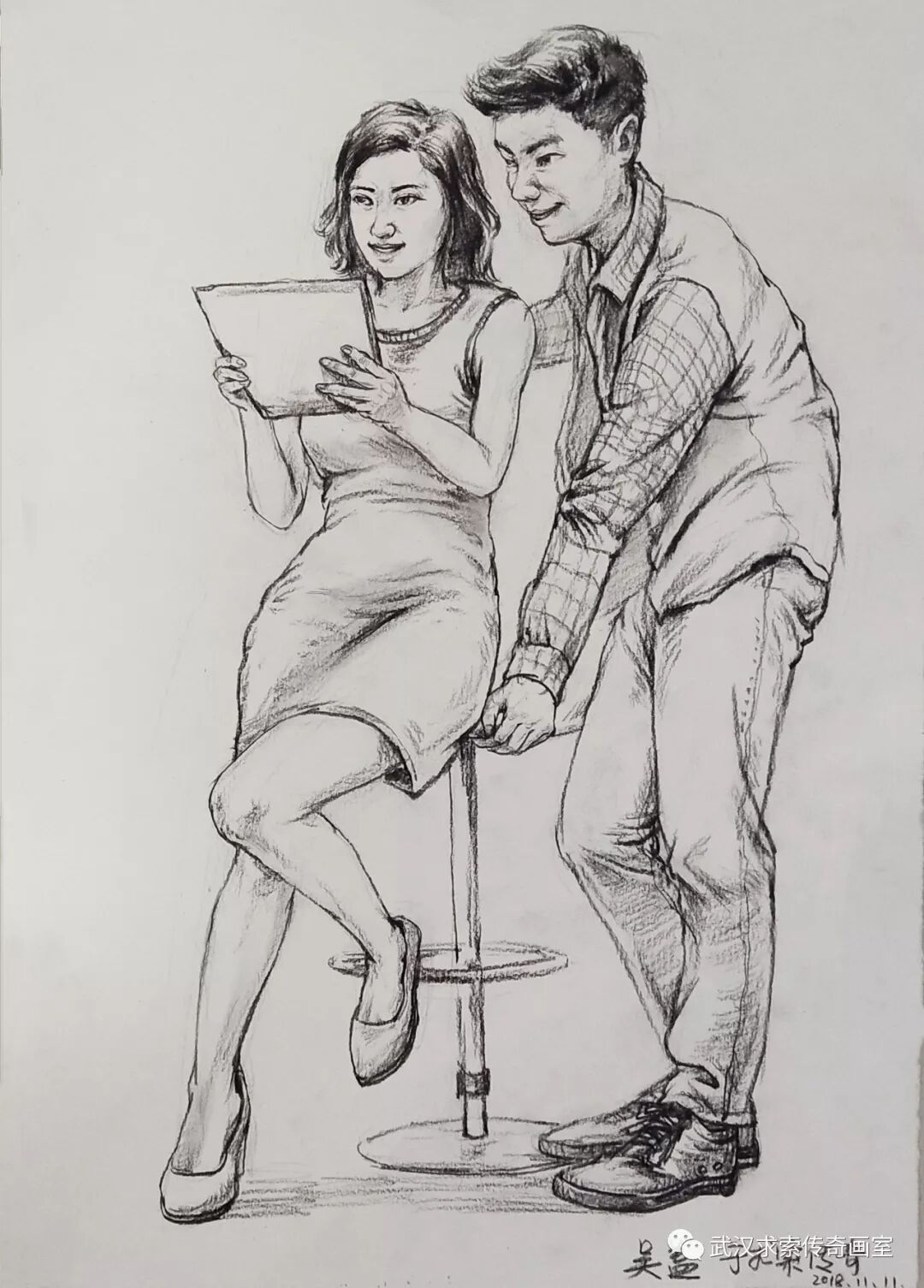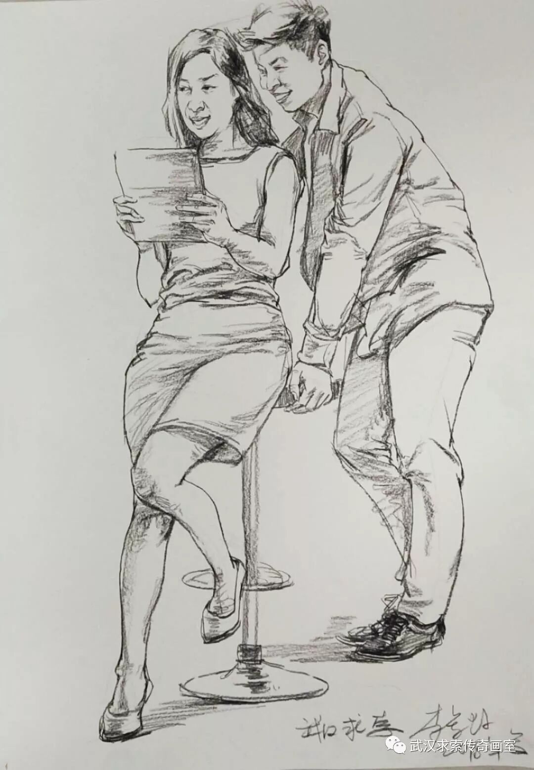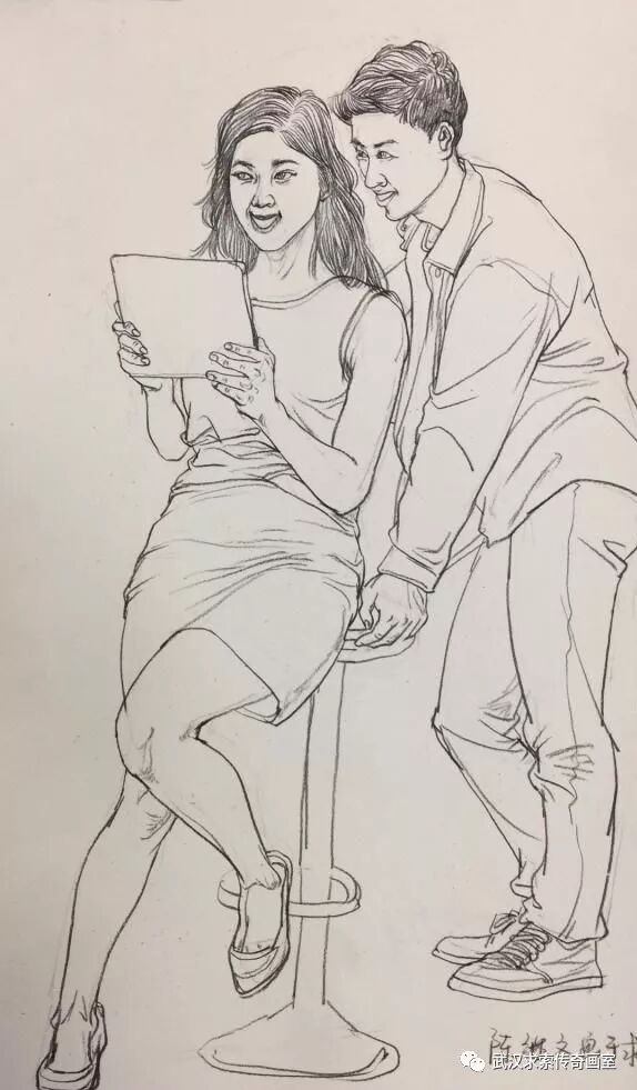 本次小联考速写题目为一男一女。男站女坐。看似简单常规,实则很考验学生能力。