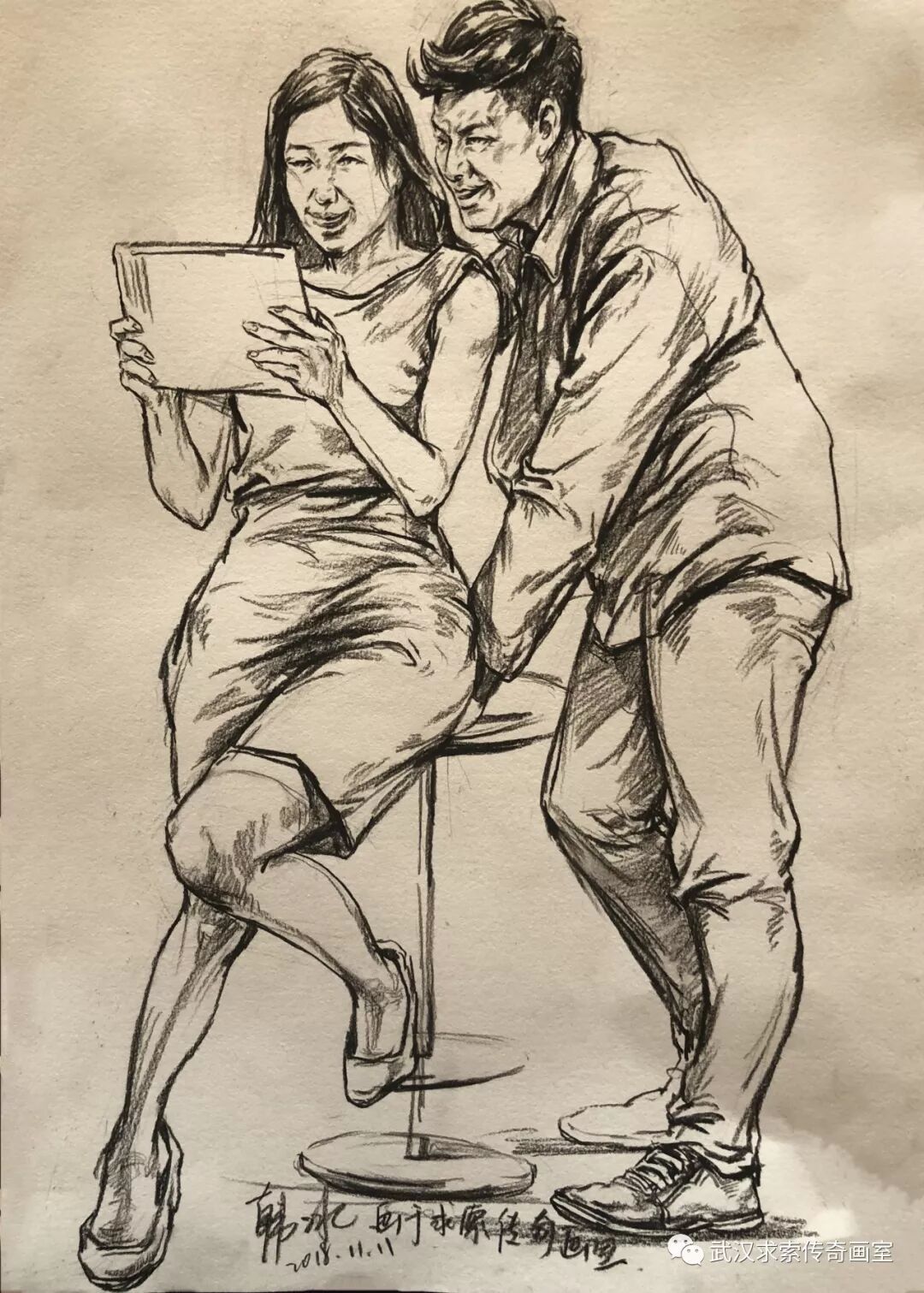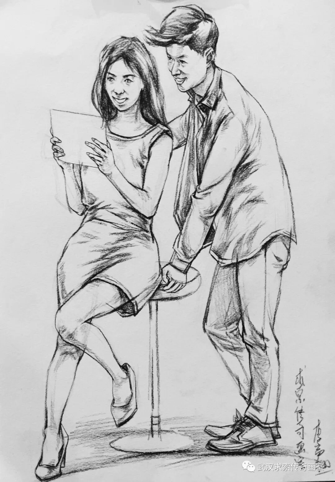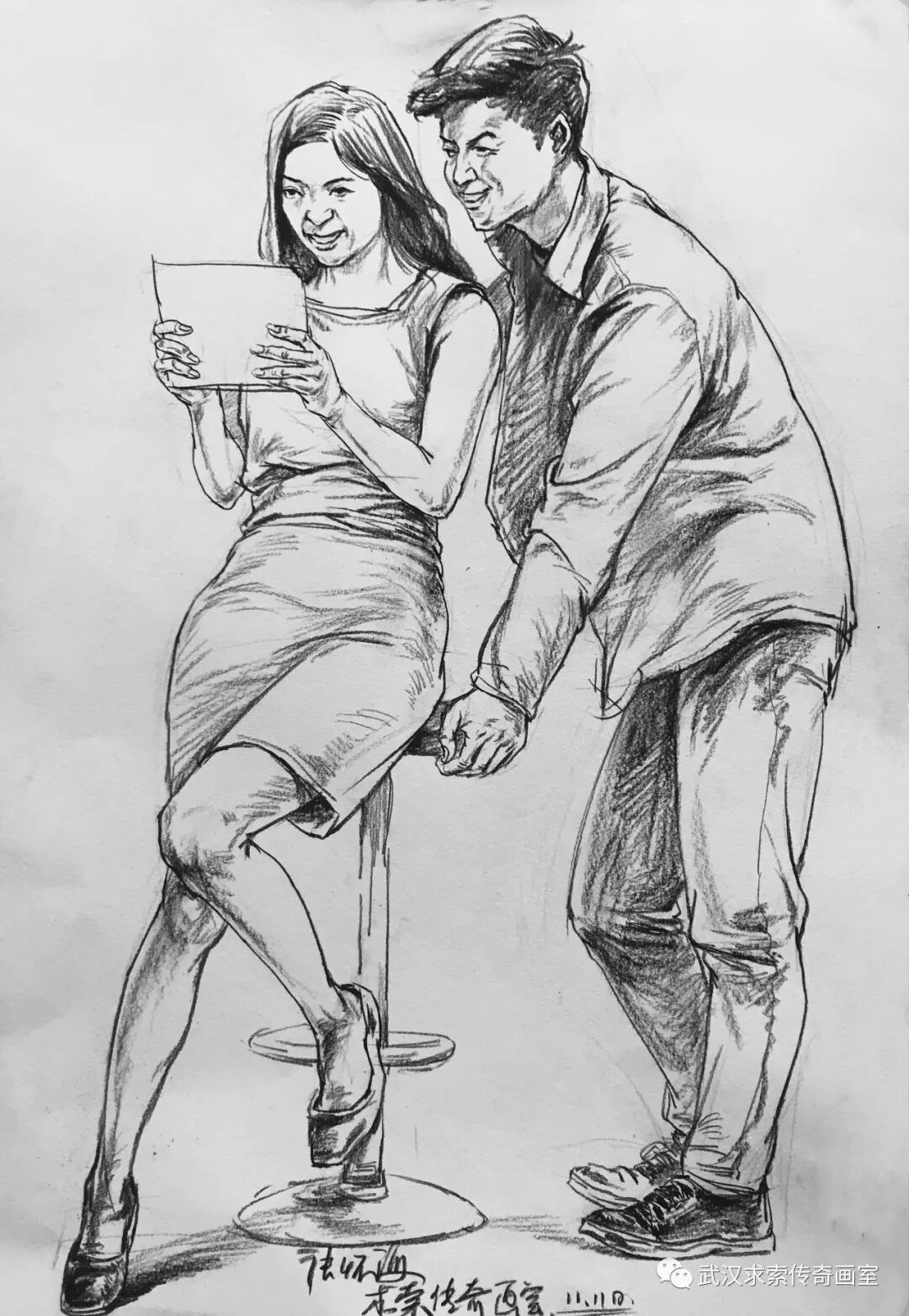本次小联考速写题目为一男一女。男站女坐。看似简单常规,实则很考验学生能力。